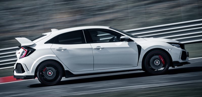 A Honda observa que o segredo está mesmo nas curvas. De acordo com Ryuichi Kijima, responsável pelo acerto dinâmico do Type R, o entre-eixos mais longo, os pneus mais largos e o kit aerodinâmico (que inclui até geradores de vórtice) contribuem para um aumento de até 10 km/h na velocidade do carro nas entradas de curva. Kijima cita como exemplo a Metzgesfeld, uma curva que, em média, é atacada a 150 km/h – o Type R 2017 entra nela a 160 km/h.